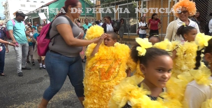 Varios centros educativos de Bani realizaron el desfile escolar llamado carnavalito, con el tema retornemos a los buenos valores.