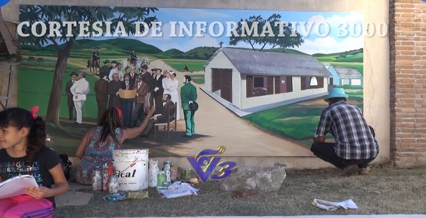 En la restauración de los murales también está colaborando el artista plástico Alejandro Asunción, el cual retoca un mural sobre la celebración del convite.