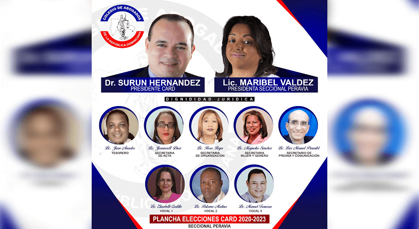“Dignidad Jurídica” la encabeza la licenciada Maribel Valdez, actual presidente de la filial Peravia y la integran además, el licenciado Juan Amador como tesorero, la licenciada Jeannerett Díaz secretaria de acta, Rosa Reyes de organización, Magnolia Sánchez, secretaria de mujer y género, Luis Manuel Pimentel de prensa y comunicación.