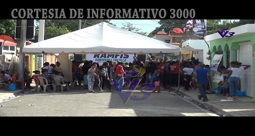 Con personas empujando para conseguir raciones alimenticias finalizó ayer en el barrio Villa Majega un acto en el cual participó Ramfis Domínguez Trujillo.