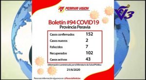 Un total de 899 casos nuevos de Covid-19 se reportaron en el país, según el boletín 94 del ministerio de salud pública.