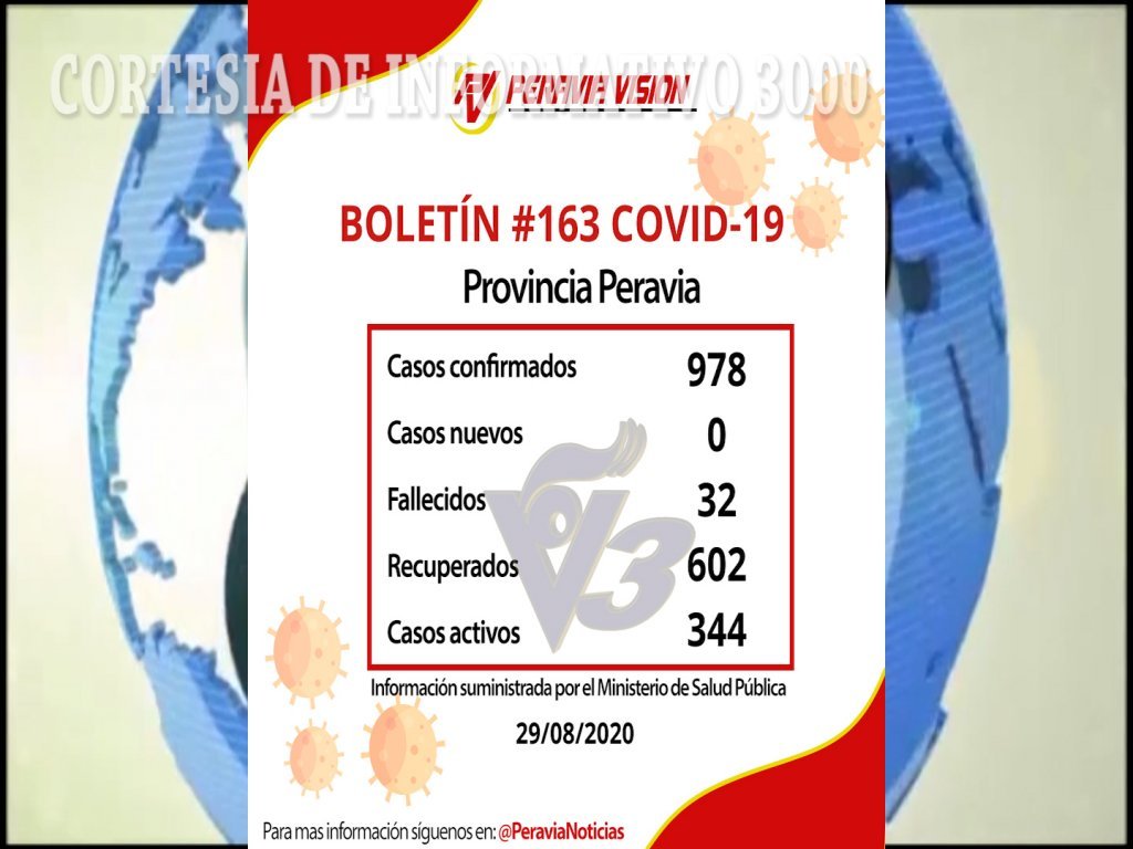 En la provincia Peravia, según las cifras emitidas por el informe, tampoco se han registrado casos nuevos en las últimas horas, por lo que el número de casos confirmados es de 978, con 602 casos de pacientes recuperados y 32 fallecimientos.