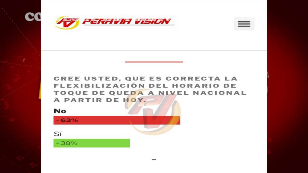 La población considera que no es correcta la flexibilización del nuevo horario de toque de queda, según la encuesta publicada por Peravia Visión en su página Web.