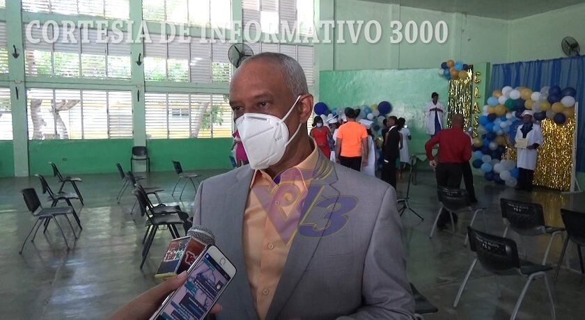 La actividad tuvo que ser dividida en secciones, como parte de las medidas sanitarias adoptadas por la pandemia del covid-19, según explicó el director de la tanda vespertina del liceo Francisco Gregorio Billini, Wilson Peña.
