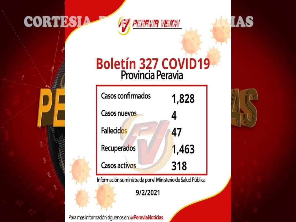 Salud Pública reporta para la Provincia Peravia cuatro casos nuevos por covid-19, según el boletín que de manera diaria emite ese ministerio.