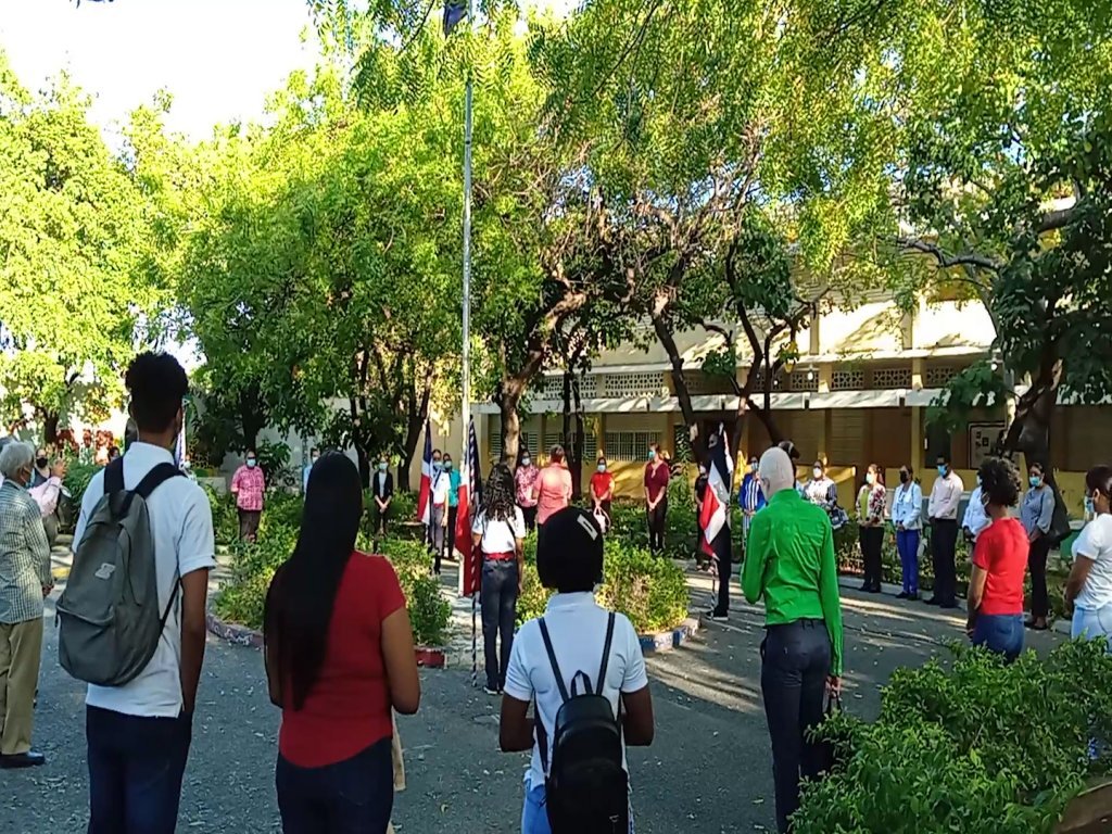 Con la presencia del personal administrativo y docente del Liceo Francisco Gregorio Billini, así como invitados especiales, se realizó un pequeño acto patrio, que tuvo lugar en la parte frontal del referido centro de estudios y comenzó con el izamiento de la bandera.
