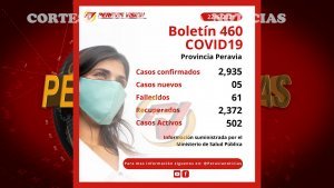 Peravia reporta la suma de 05 casos nuevos y 61 defunciones acumuladas registradas, una adicional, esto reflejado en el boletín de salud número 460 del ministerio de Salud Pública.