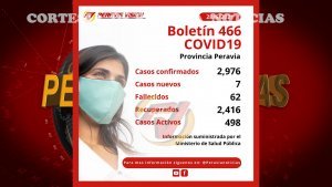 Peravia reporta este lunes 07 casos nuevos de contagios de COVID-19, 62 defunciones acumuladas y continuamos líder en positividad, esto reflejado en el boletín  número 466, que emite de manera diaria el ministerio de Salud Pública.
