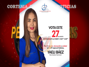 Sin embargo la periodista Yaeli Báez, quien encabeza la plancha “Renovación y Rescate” de la regional Valdesia del CDP, desmintió que haya renunciado junto a la también periodista, Lisselot Zapata de sus aspiraciones a dirigir la seccional del CDP, Azua, Baní y Ocoa.