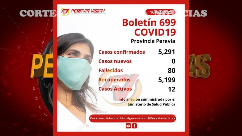 La provincia Peravia no  registró  casos nuevos de coronavirus en las  últimas 24 horas, según el boletín # 699, que emite el Ministerio de Salud Pública a través de la Dirección Nacional de Epidemiología.