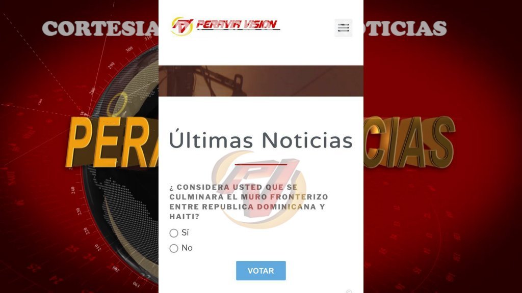 En ese sentido, la encuesta para esta semana que tendremos a disposición de nuestros usuarios en www.peraviavision.tv es: ¿Considera usted que se culminará el muro fronterizo entre República Dominicana y Haití?