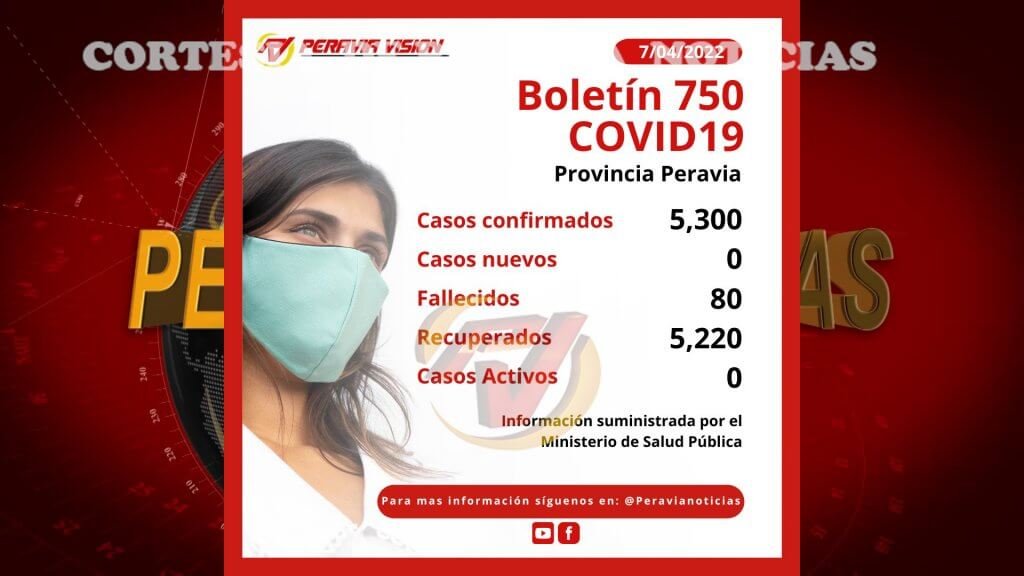 Como se puede detallar en las emisiones que comprenden los boletines del 746 al 750, Peravia solo reportó un caso nuevo, y hasta el día de hoy no hubo registros de casos activos con la enfermedad.
