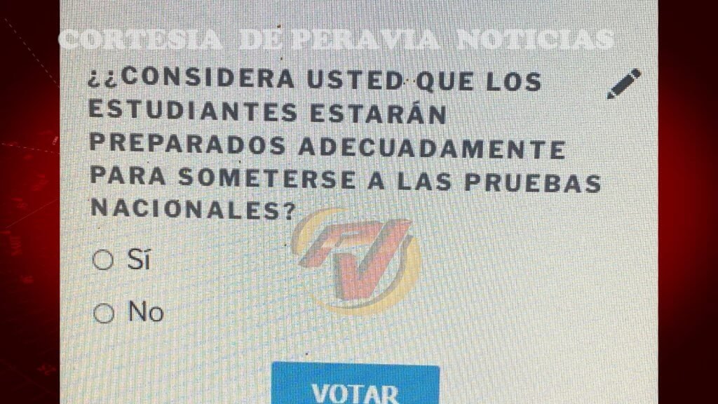 En ese sentido, la encuesta para esta semana que tendremos a disposición de nuestros usuarios en www.peraviavision.tv es: ¿Considera usted que los estudiantes estarán preparados adecuadamente para someterse a las pruebas nacionales?