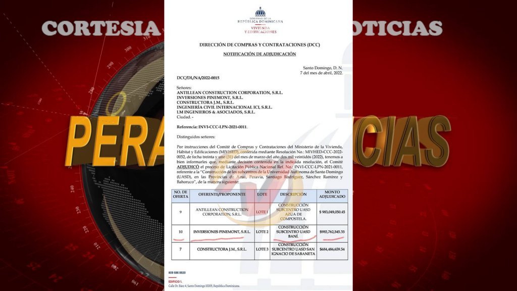 De acuerdo con el legislador, la obra tan anhelada por los peravianos y toda la región Valdesia fue adjudicada el pasado 7 de abril, a la empresa Inversiones Pinemont y la misma tendrá un costo de 985,762,545.53 pesos.