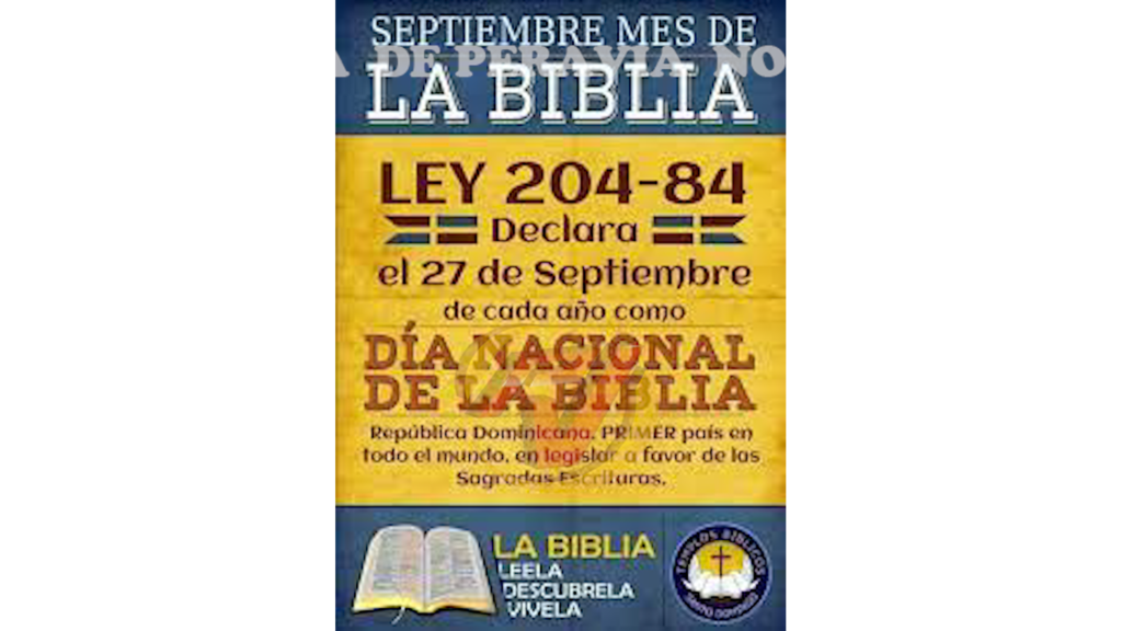 La Ley 204-84 declara este 27 de septiembre Día Nacional de la Biblia en la República Dominicana, uno de los libros más reproducidos y leídos de toda la historia de la humanidad, de acuerdo a expertos.