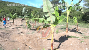 Peravia, R.D. A modo de protesta, en los terrenos del play del distrito municipal del Carretón algunos comunitarios sembraron plantas de plátanos y guineos.