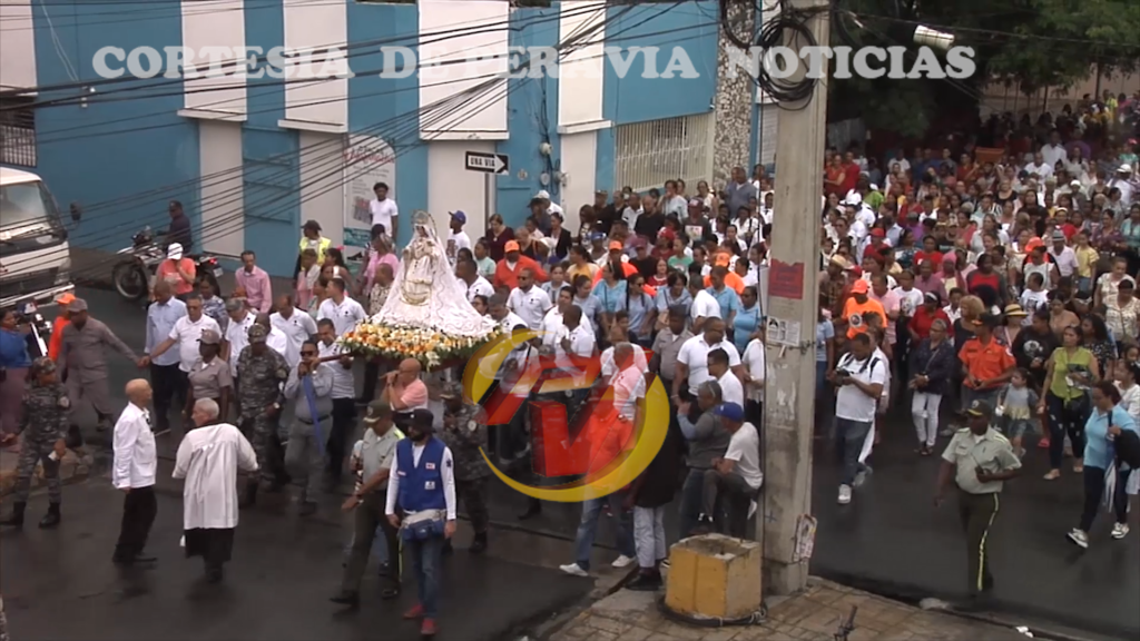 A pesar de las lluvias esporádicas que se registraron en la tarde de ayer, cientos de feligreses participaron en la tradicional procesión de la virgen Nuestra Señora de Regla por diversas calles de Baní.