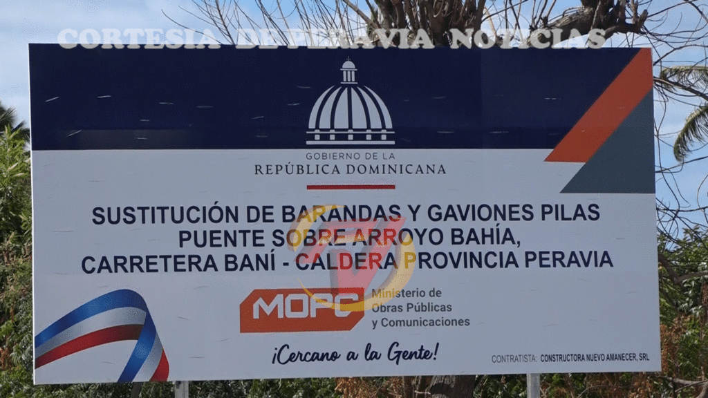 Asegura Obras Públicas en una valla colocada en el lugar, que procederá a la sustitución de barandas y gaviones pilas en ese puente sobre el Arroyo Bahía.
