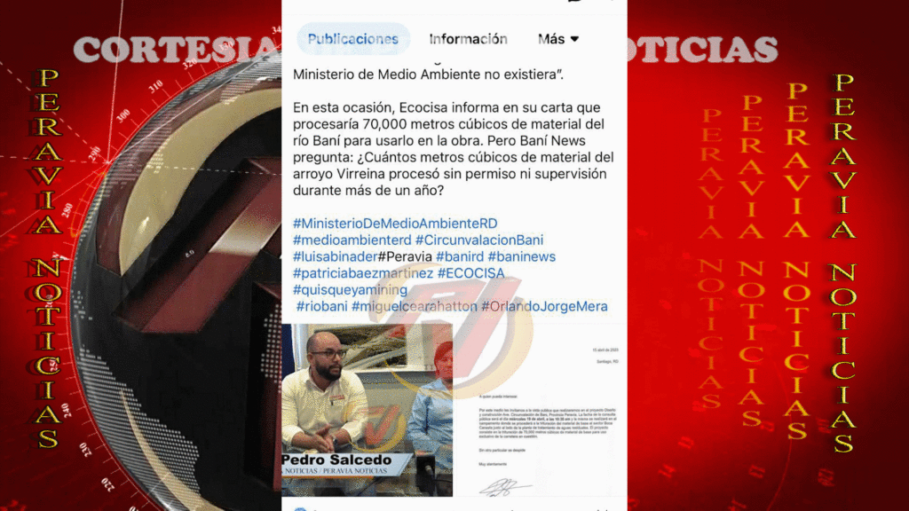 La periodista Patricia Báez está denunciando alegadas operaciones ilegales en el río Baní de parte de la compañía Ecocisa, empresa contratista para la construcción de la avenida de circunvalación.