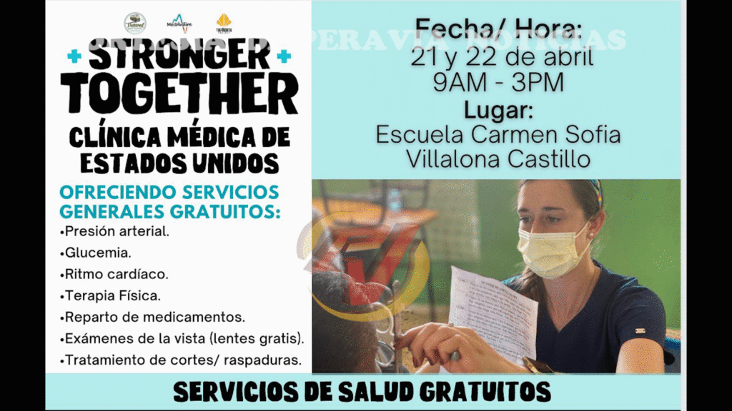 Stronger Together está ofreciendo sus servicios desde este viernes 21 de abril hasta mañana sábado 22 en la comunidad Cañafistol totalmente gratis.