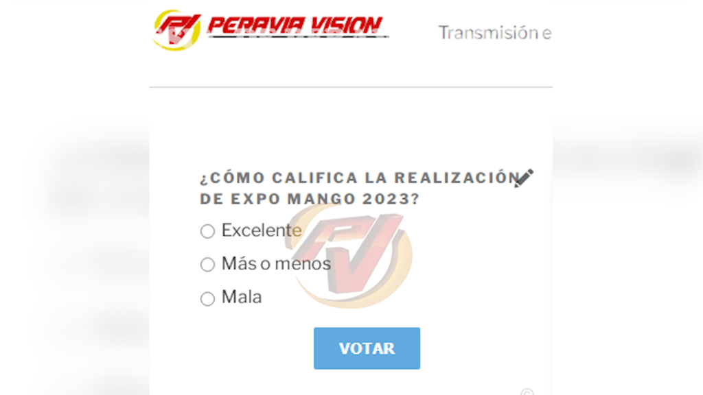En ese sentido, para esta semana la pregunta que tenemos a disposición nuestros usuarios en www. Peraviavision.tv es ¿Cómo califica la realización de Expo Mango 2023?