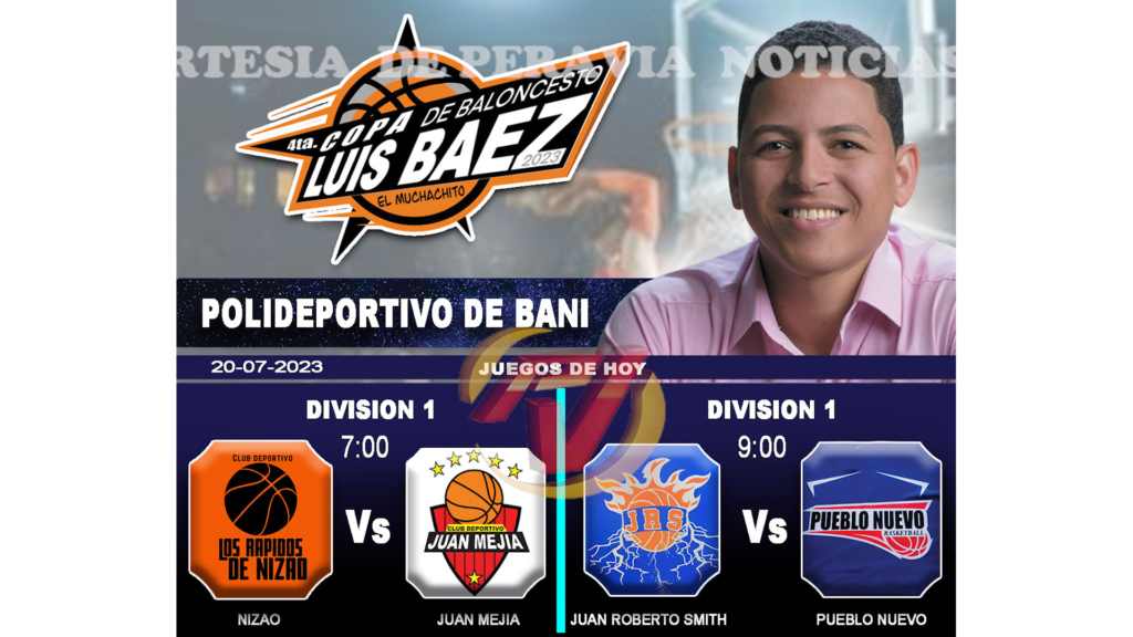 La realización de la cuarta copa de baloncesto Luis Báez continúa, y este jueves se estarán enfrentando los equipos Los Rápidos de Nizao Vs Juan Mejía y Juan Roberto Smith Vs Pueblo Nuevo.