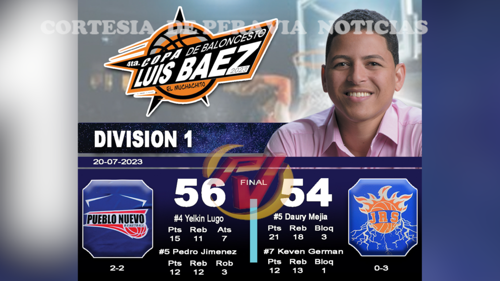Dando seguimiento a los juegos que se desarrollan de la Cuarta Copa de Baloncesto Luis Báez, se informa que tras el enfrentamiento efectuado la noche de ayer jueves, resultaron victoriosos los equipos de Nizao y Pueblo Nuevo.