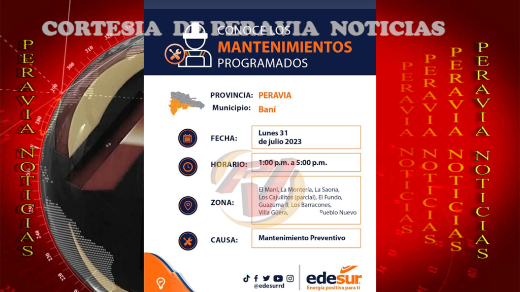 En este inicio de semana, múltiples son los sectores que no contaran con energía eléctrica debido a mantenimientos preventivos que ejecuta EDESUR Dominicana.