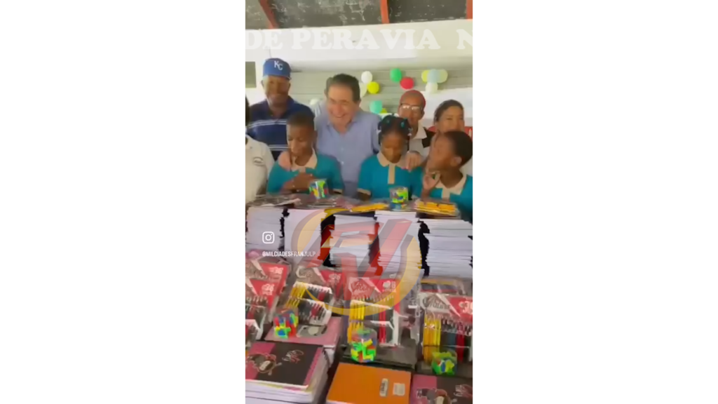 El senador por Peravia, Milciades Marino Franjul, continúa con su jornada de entrega de útiles escolares en los sectores con menos recursos económicos de la provincia.
