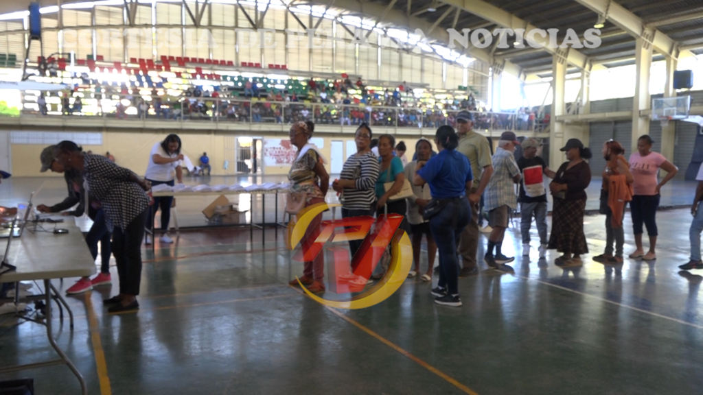 Este miércoles en el polideportivo de Baní se realizaron trabajos de cambio de plástico de las tarjetas Supérate.