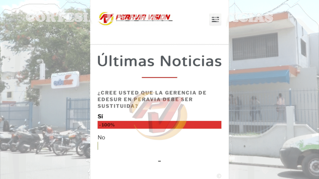 La encuesta semanal realizada la semana pasada por Peravia Visión a través de su plataforma digital www.peraviavision.tv, reveló que el 100% de los votantes considera que la gerencia de Edesur en Baní debe ser sustituida, debido a la falta de respuesta ante las constantes quejas de los usuarios, el deficiente servicio en la única oficina local y otras demandas aún pendientes de solución.
