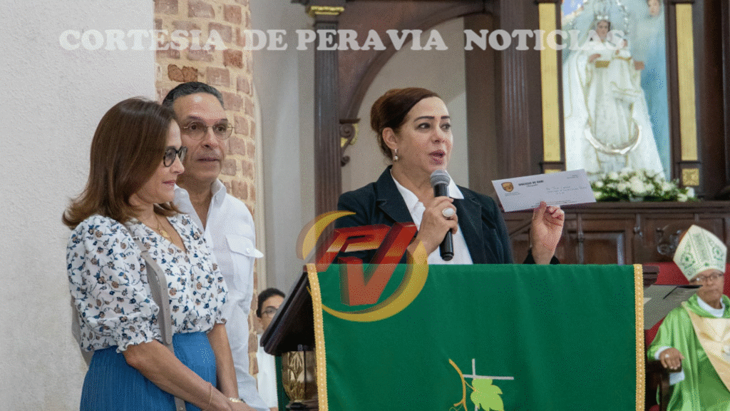 A la celebración eucarística asistieron diversas personalidades, entre estas, la gobernadora civil Ángela Yadira Baez, el senador Julito Fulcar, los diputados Willy Sánchez y Carmen Leyda, una representación de la familia Perelló, representantes de la Cámara de Comercio y Producción, Movimiento Cultural Peraviano, entre otros.