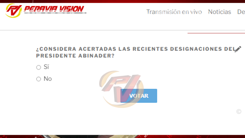 Tras estas designaciones y cambios en instituciones, la pregunta que tenemos a disposiciรณn de nuestros usuarios a travรฉs de WWW.PERAVIAVISION.TV es ยฟConsidera acertadas las recientes designaciones del presidente Abinader?