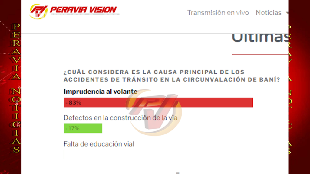 En tal sentido, para esta semana la encuesta que tenemos a disposiciรณn de nuestros usuarios a travรฉs de WWW.PERAVIAVISION.TV es ยฟEstรก de acuerdo con la medida asumida por la Alcaldรญa de Banรญ de exponer a comercios que registran grandes deudas con la entidad?