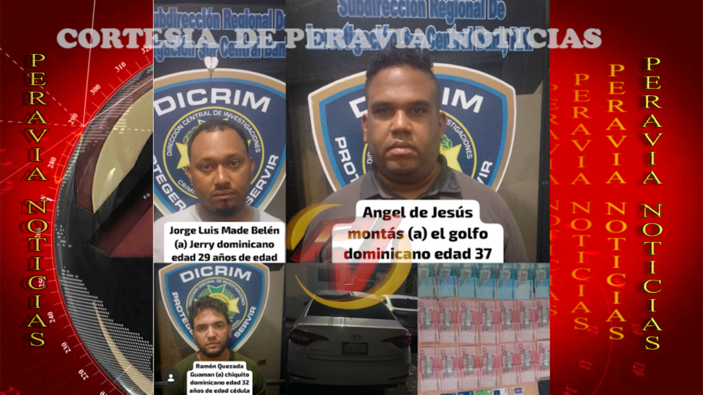 Los detenidos fueron identificados como รngel de Jesรบs Montรกs, de 37 aรฑos; Luis Made Belรฉn, de 38 aรฑos; y Ramรณn Alexander Quezada, de 32 aรฑos, todos residentes en la provincia Santo Domingo.