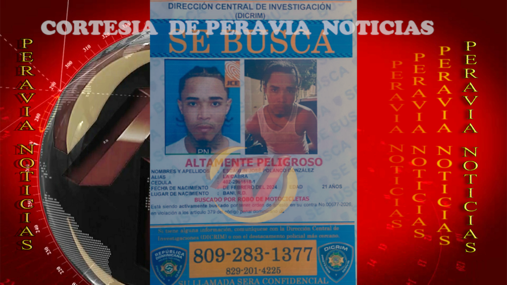 De acuerdo con el cartel oficial, el mismo es buscado por su presunta vinculaciรณn a varios robos de motocicletas y en su contra pesa una orden de arresto, bajo acusaciones que violan el artรญculo 379 del Cรณdigo Penal Dominicano.